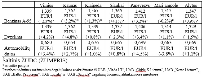 2024 m. 41savaitę didmeninėje prekyboje vidutinės degalų kainos didėjo. Didmeninė dyzelino kaina analizuojamu laikotarpiu padidėjo 3,7 proc., dyzelino žemės ūkiui – 5,6 proc., automobilių dujų – 1,4 proc., benzino A-95 – 2,5 proc., o šildymo kuro – 6,6 proc. Palyginti su 2023 m. atitinkamu laikotarpiu didmeninė dyzelino kaina sumažėjo 11,3 proc., šildymo kuro – 15,6 proc., dyzelino žemės ūkiui – 19,3 proc., benzino A-95 – 9,2 proc., o automobilių dujų – padidėjo 11,1 proc.
