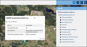 Pelės kairiuoju klavišu paspaudę žemėlapyje padėtą tašką (peržiūrimas taškas taps mėlynos spalvos), atvertoje lentelėje „KŽSRP pasikeitimai“ galėsite peržiūrėti KŽS numerį, KŽS atpažinties kodą, KŽS aprašymą, KŽS aprašyto pasikeitimo statusą.