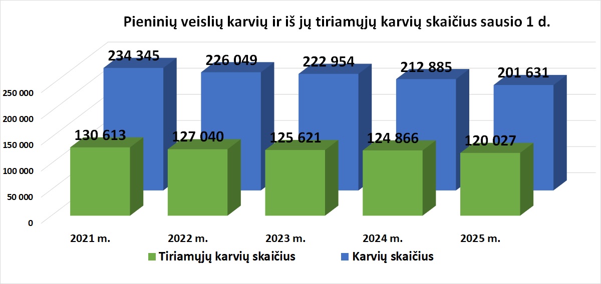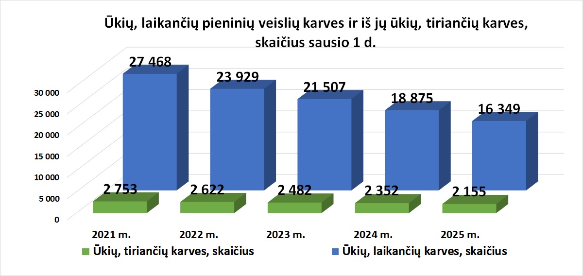 Pieninių veislių karvių ir iš jų tiriamųjų karvių skaičius