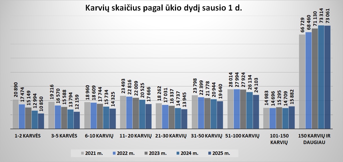 Karvių skaičius pagal ūkio dydį