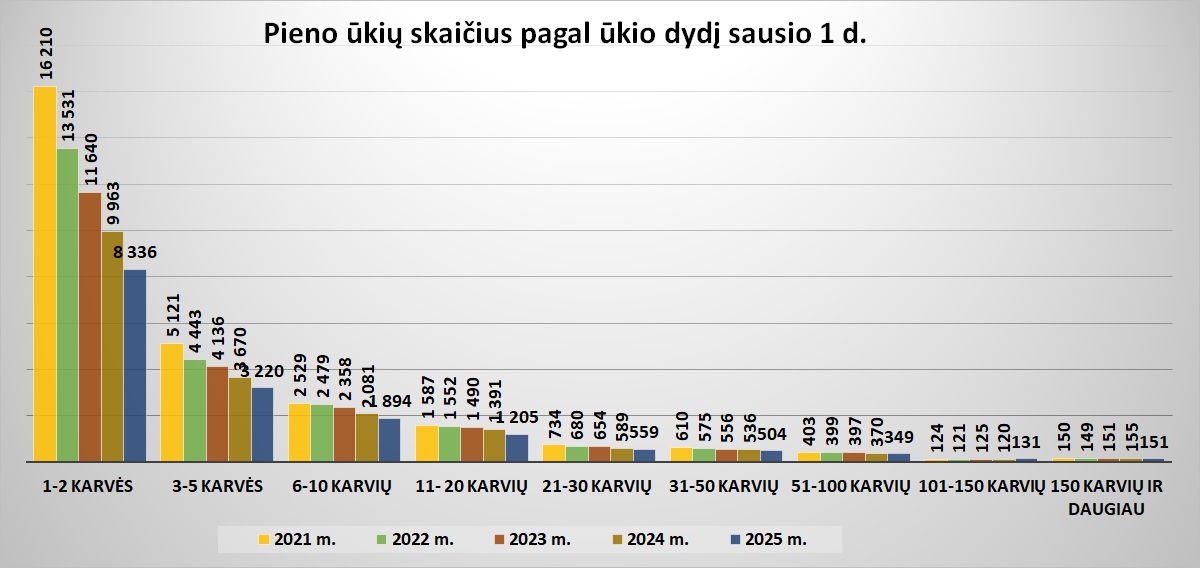 Pieno ūkių skaičius pagal ūkio dydį