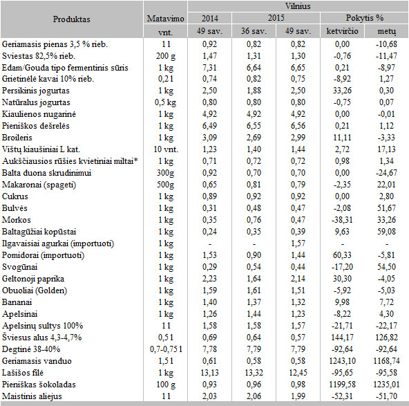 2016-01-04 – Mažmeninės maisto produktų kainos kai kuriose ES šalių sostinėse 2014 m. 49 sav. – 2015 m. 49 sav. (EUR)