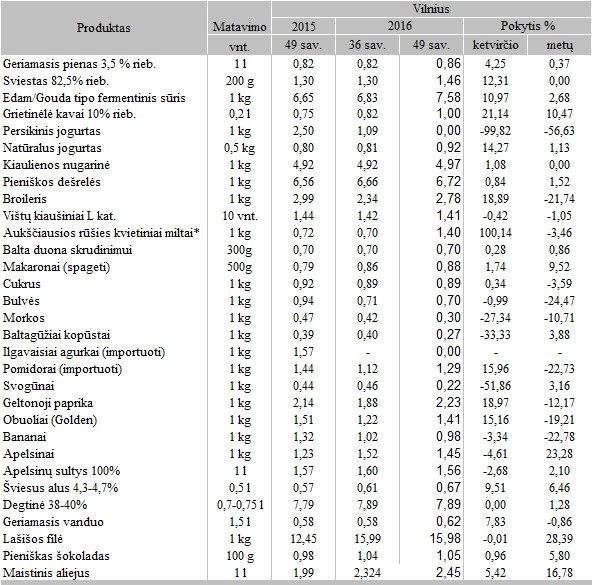 2016-12-30 – Mažmeninės maisto produktų kainos kai kuriose ES šalių sostinėse 2015 m. 49 sav. – 2016 m. 49 sav. (EUR)