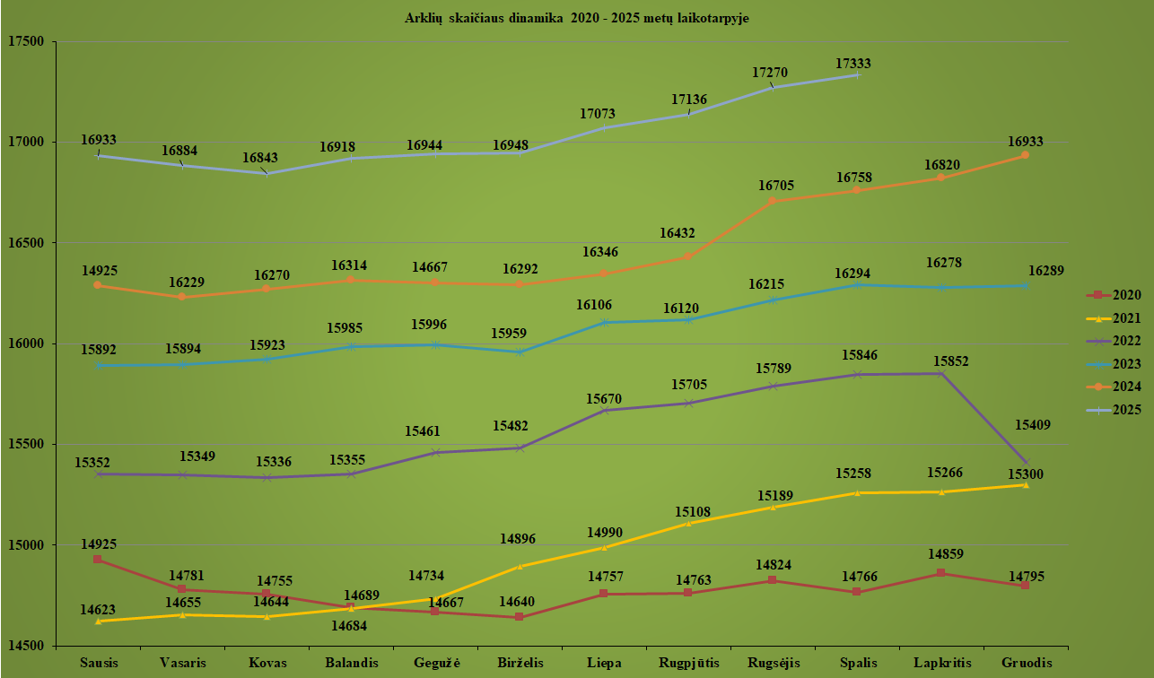 Pagrindinis » Statistika » Arklių skaičiaus dinamika 2020 – 2025 metais
