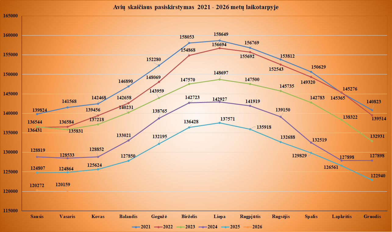 Avių skaičiaus dinamika 2021–2026 metais