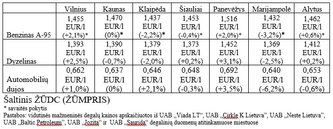 Vidutinės degalų kainos Lietuvos rinkoje 2024 m. 33 savaitę