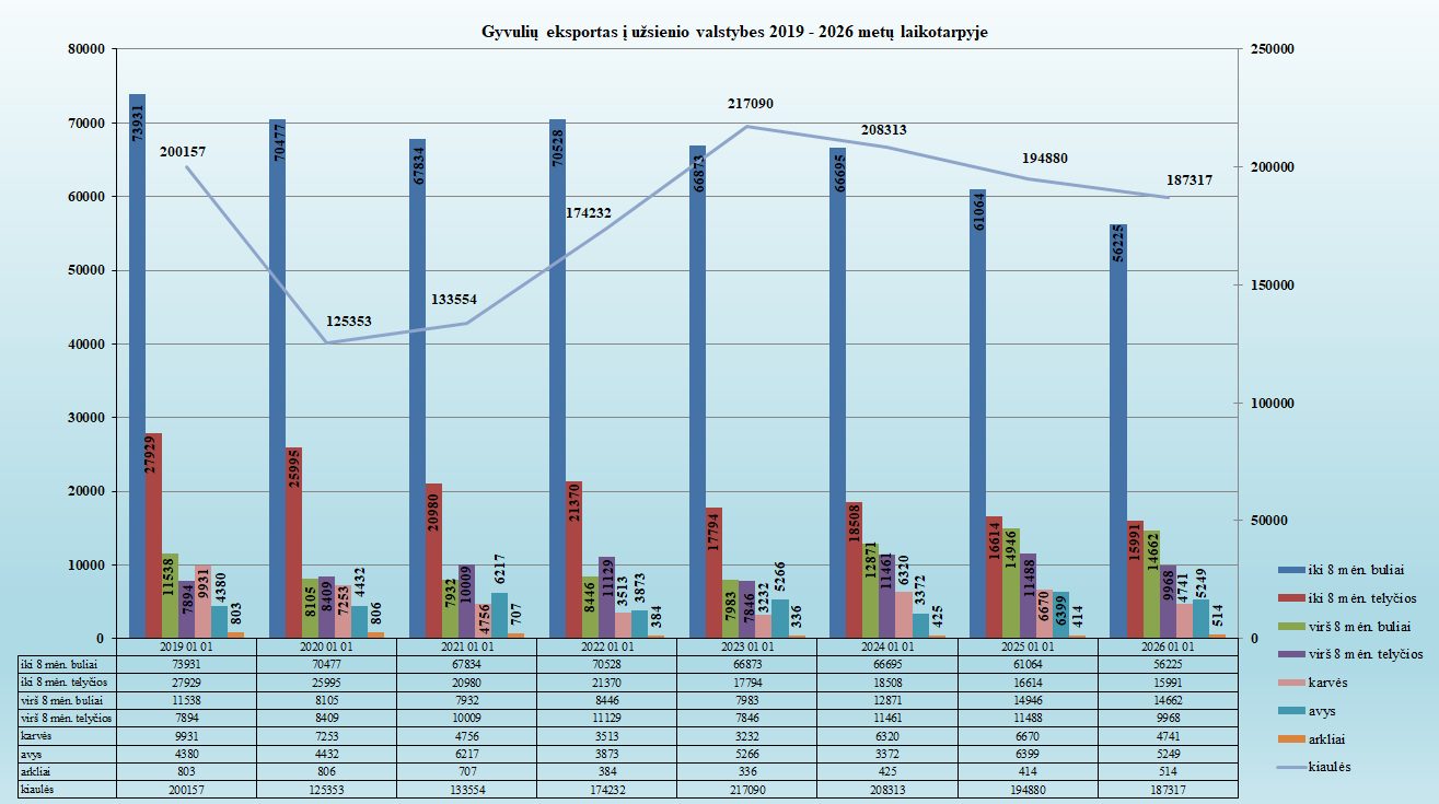 Pagrindinis » Statistika » Gyvulių eksportas į užsienio valstybes 2019–2026 metais