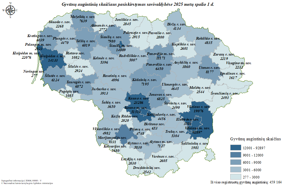 Pagrindinis » Statistika » Gyvūnų augintinių skaičiaus pasiskirstymas savivaldybėse 2025 m. spalio 1 d.