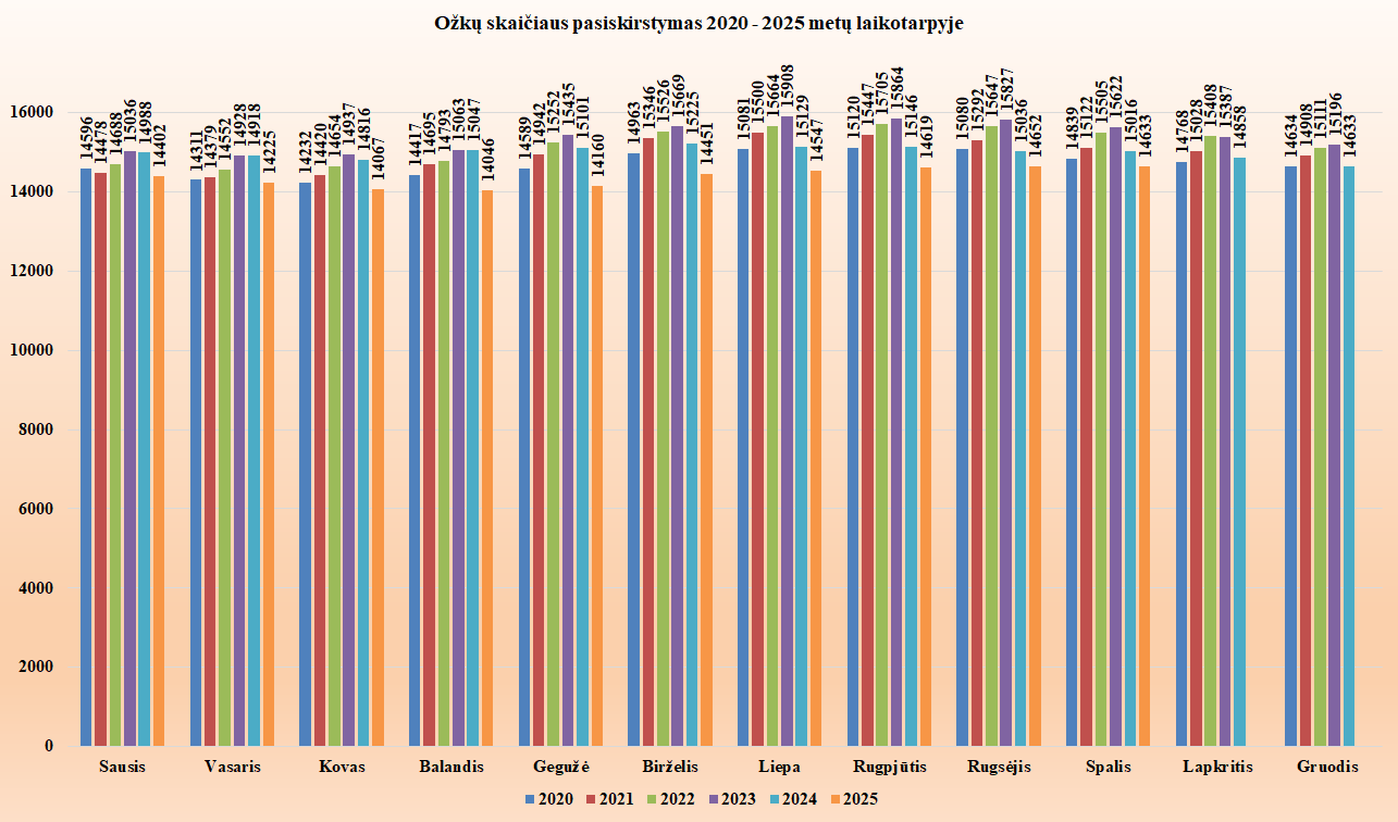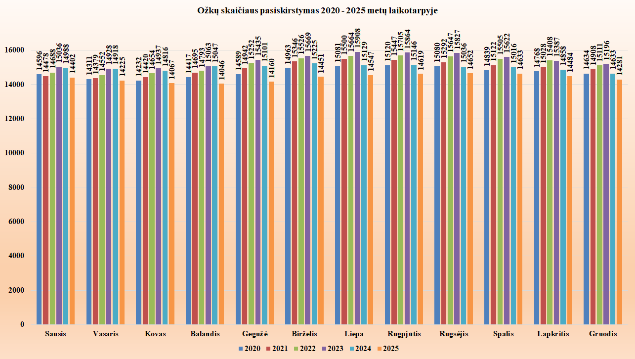 Pagrindinis » Statistika » Ožkų skaičiaus dinamika 2020 – 2025 metais