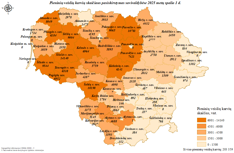Pagrindinis » Statistika » Pieninių veislių karvių skaičiaus pasiskirstymas savivaldybėse 2025 m. spalio 1 d.