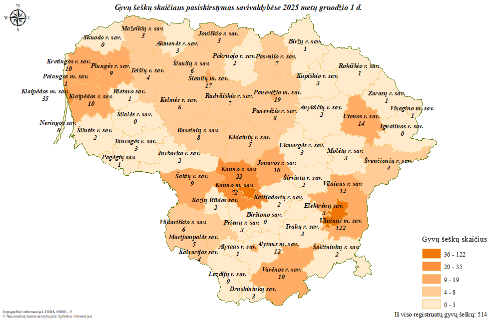 Pagrindinis » Statistika » Šeškų skaičiaus pasiskirstymas savivaldybėse 2025 m. gruodžio 1 d.