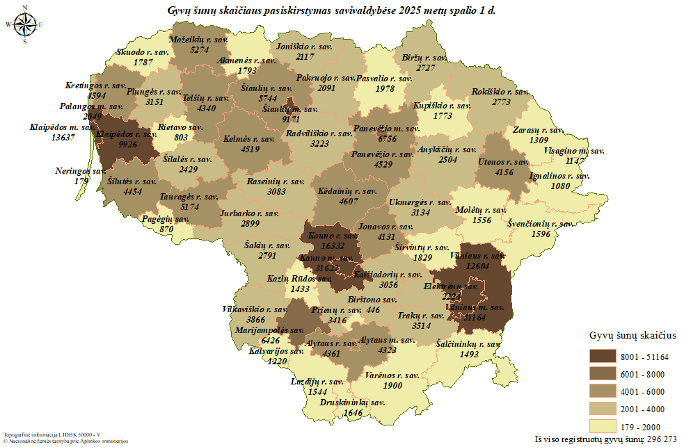 Pagrindinis » Statistika » Šunų skaičiaus pasiskirstymas savivaldybėse 2025 m. spalio 1 d.